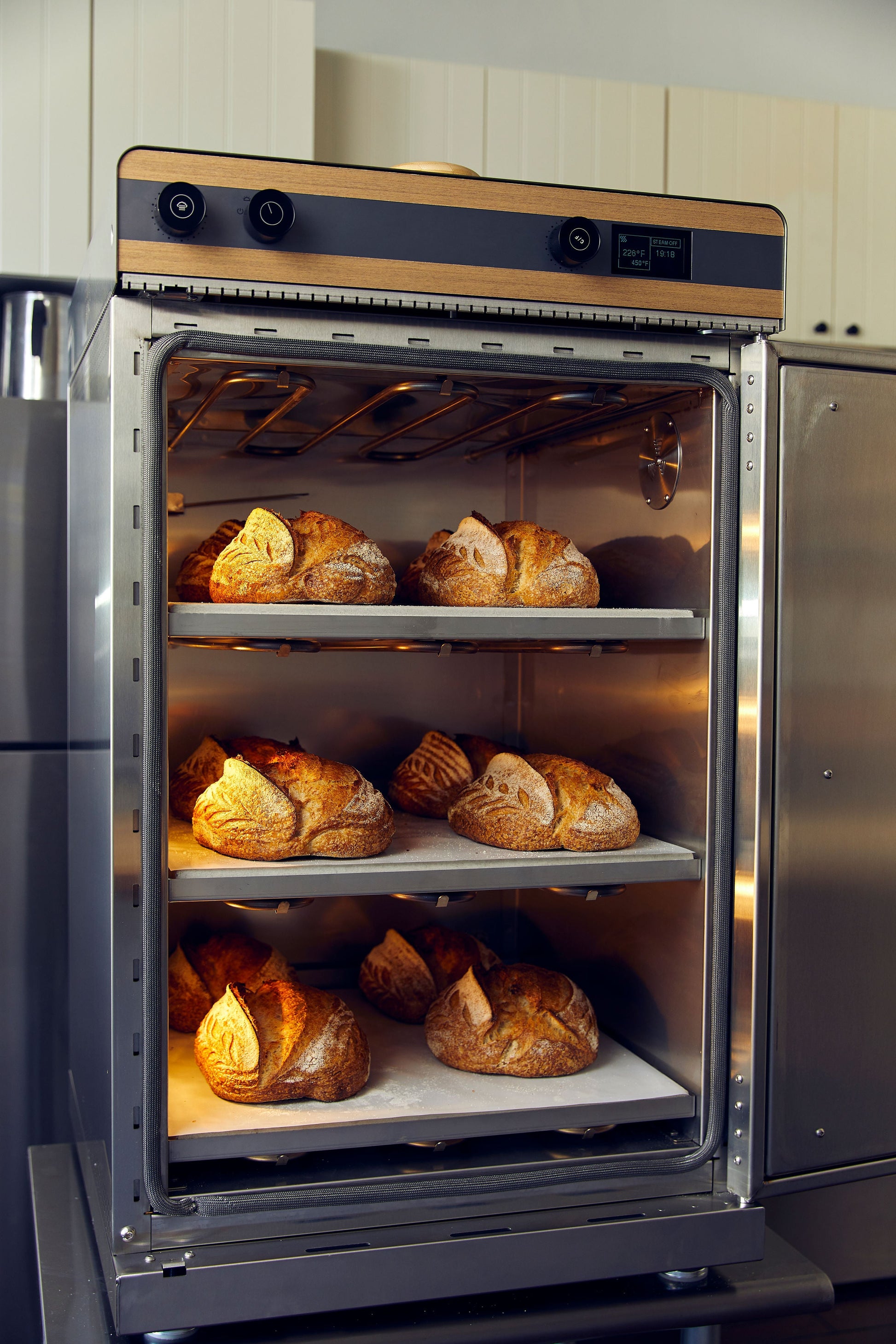 - Bakes 12 (1000g) to 15 (800g) loaves in 40 minutes